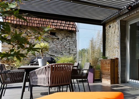 A cobertura de pátio bioclimática BIO 180 é ideal para todos os projetos de cobertura de terraço, oferecendo uma cobertura de até 27m2 com a instalação de um único quadro. Um único quadro, moldura dupla ou design personalizado e com uma altura de até 6,1 metros, as opções são infinitas, permitindo que você crie o espaço que melhor se adapte às suas necessidades.